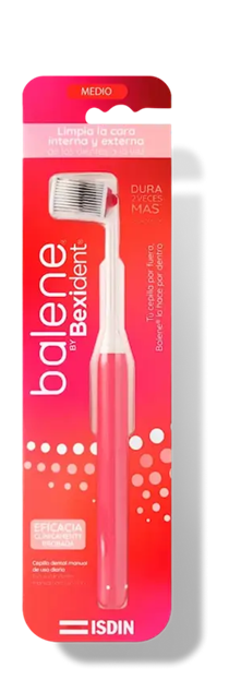 Cuida tu higiene bucodental con Balene by Bexident® Cepillo Coral Medio, el cepillo dental de uso diario que limpia la cara interna y externa de los dientes a la vez. Sus filamentos de nueva generación duran 2 veces más que los de un cepillo convencional1.