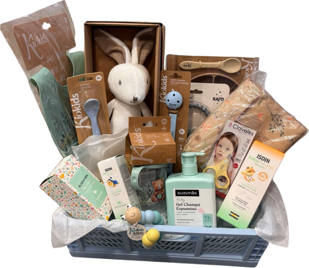 La personalización es nuestra especialidad. Desde el sexo del bebé hasta tus preferencias de marcas, productos específicos o incluso incluir el nombre del bebé en biberones y chupetes, nos aseguramos de que cada canastilla sea única y especial.