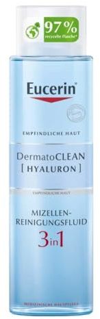 La solución micelar Eucerin Dermatoclean 3 en 1 proporciona una higiene facial completa, rápida y confortable, sin necesidad de aclarar con agua. Este producto actúa como limpiador, tónico y desmaquillador de ojos en uno. Está formulado sin fragancias, sin alcohol, sin tensoactivos aniónicos, sin colorantes y sin parabenos. Además, ha sido oftalmológicamente probada, lo que la hace adecuada para su uso en personas que usan lentes de contacto.