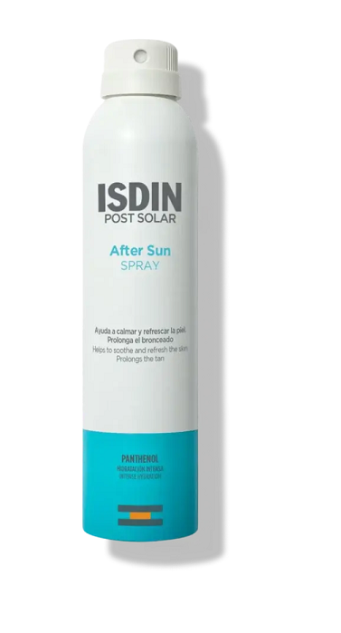After Sun ISDIN® Efecto inmediato spray post solar 200 ml está especialmente formulado para cuidar e hidratar la piel tras la exposición solar, devolviéndole su sensación de bienestar y aliviando sus irritaciones cutáneas. Una de las principales ventajas de este spray post-solar es, precisamente, que gracias a su práctico formato, evita las descamaciones y suaviza el tejido cutáneo de una forma rápida y eficiente. Proporciona la máxima hidratación y es ideal para aquellos días de sobreexposición solar en los que la piel presenta tiranteces, quemaduras o sequedades.