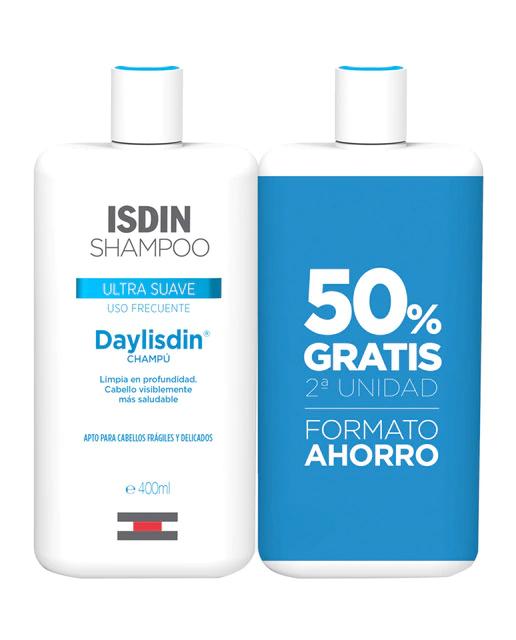 El Champú Ultra Suave Isdin está formulado para cabellos frágiles, logrando un resultado visiblemente más saludable, suave y brillante. Su formato incluye 2 x 400 ml. La fórmula Ultra Suave limpia en profundidad, respetando tanto el cabello como el cuero cabelludo. Es adecuado para el uso diario en todo tipo de cabellos, incluidos aquellos que son frágiles y delicados. Este champú es un complemento perfecto para el tratamiento con otros productos Isdin Champú, garantizando un cabello visiblemente más saludable y brillante. Ha sido probado dermatológicamente.