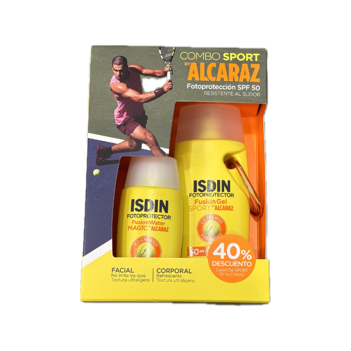 El Pack sport incluye: Fotoprotector Fusion Gel Wet Skin SPF 50 + Fotoprotector Fusion Water SPF 50. Fotoprotector facial y corporal diseñado para deportistas.